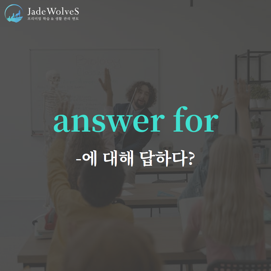 1) answer for : "~에 대해 대답하다"라고 해서 "~에 대해 책임지다"라는 의미로 사용됩니다.