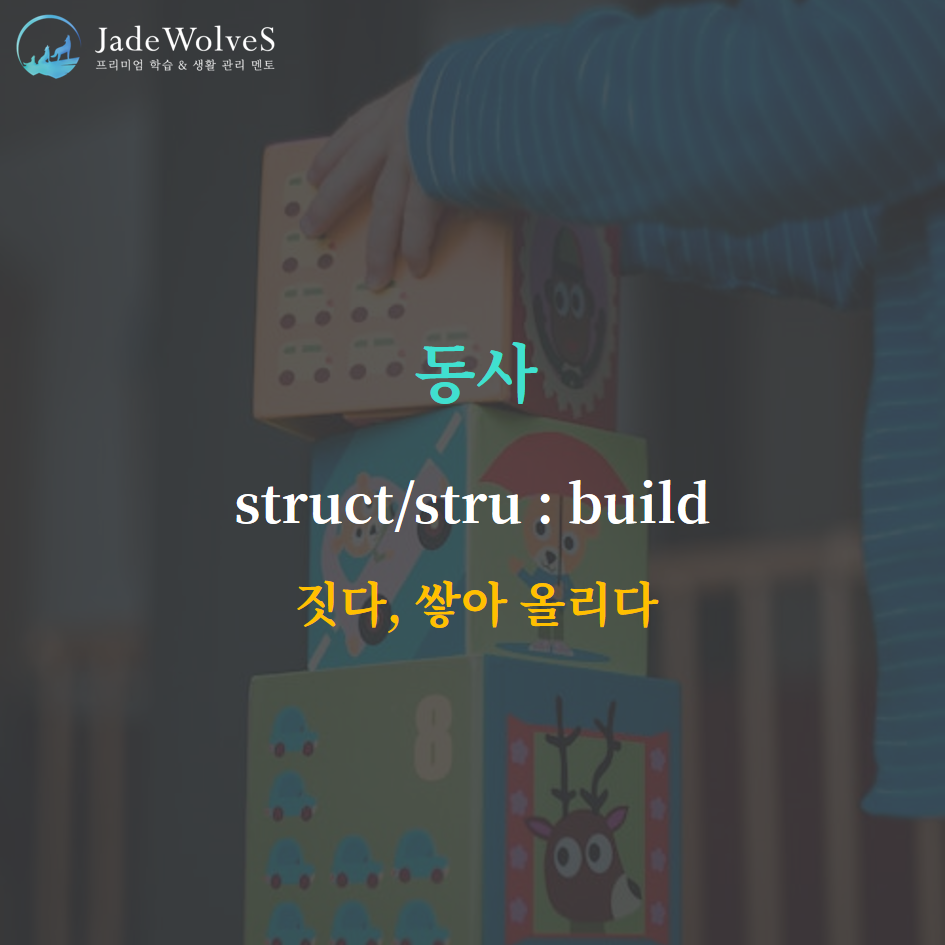 "struct/stru : 짓다, 쌓아 올리다"라는 의미로 동사를 나타냅니다.