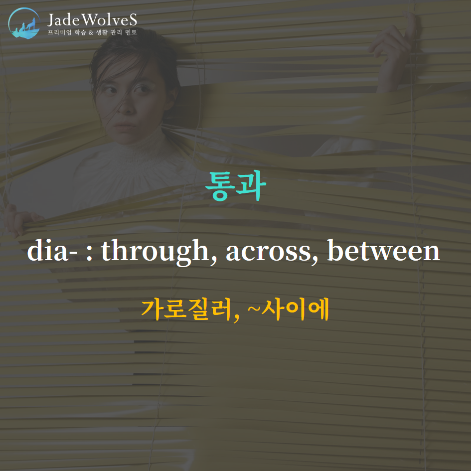 dia-는 "through, across, between : 가로질러, 사이에"라는 의미로 통과를 나타냅니다.