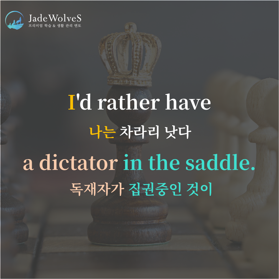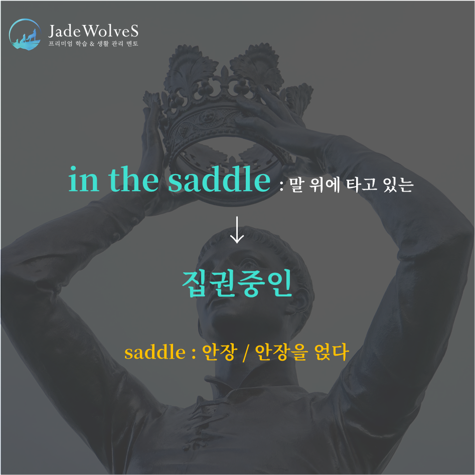 1) in the saddle : "말 위에 타고 있는"이라고 해서 "집권중인"이라는 의미로 사용됩니다.