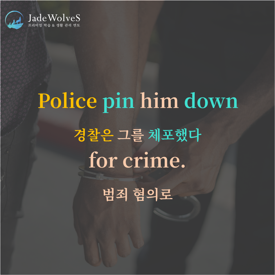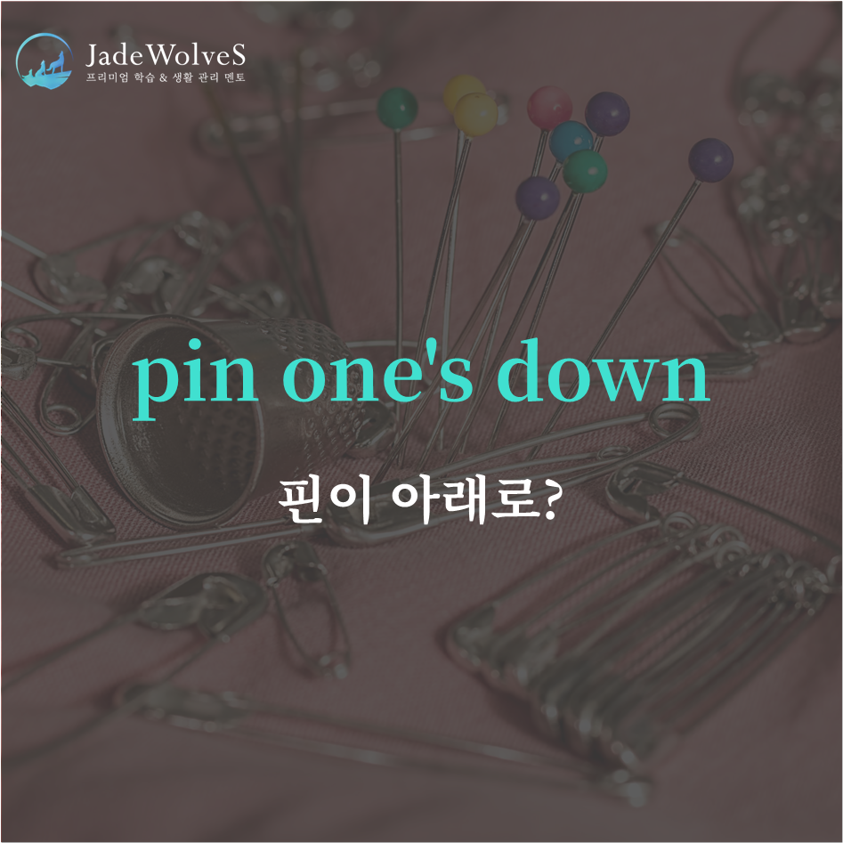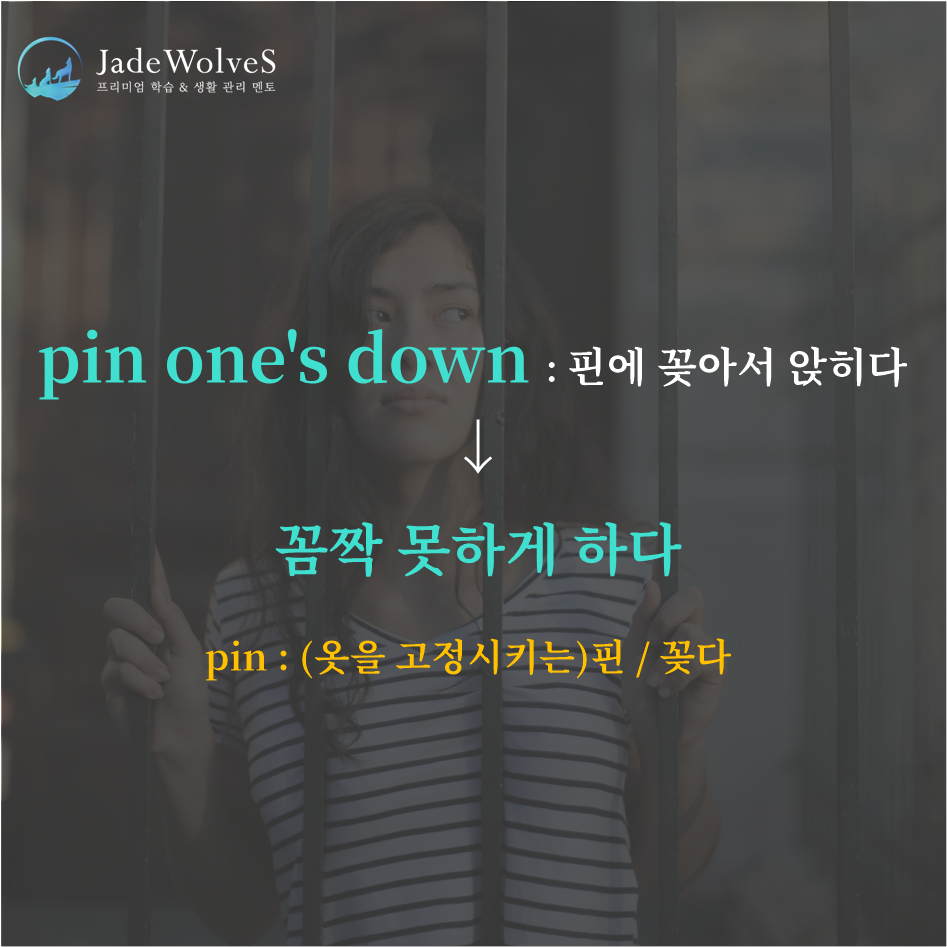 2) pin one's down : "핀에 꽂아서 앉히다"라고 해서 "꼼짝 못하게 하다"라는 의미로 사용됩니다.