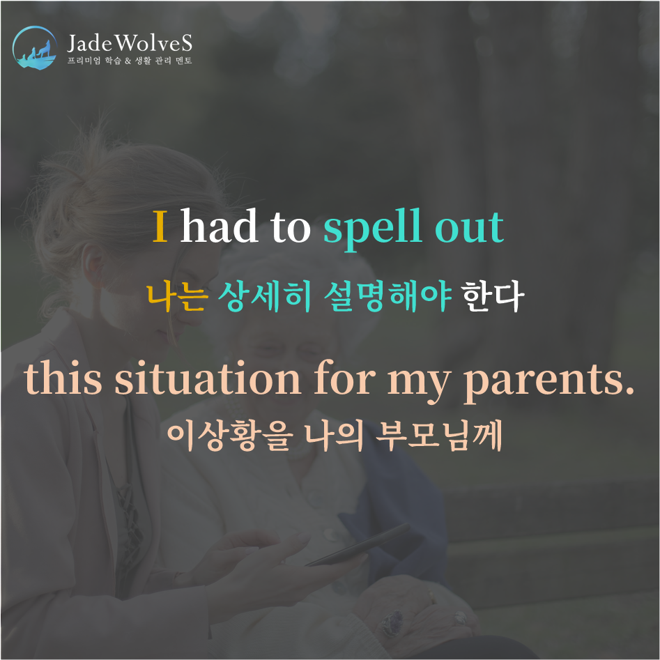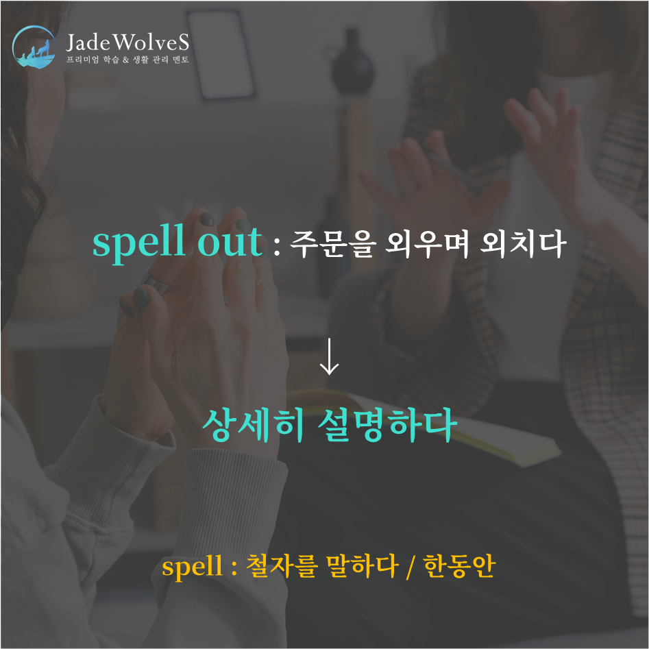 1) spell out : "주문을 외우며 외치다"라고 해서 "상세히 설명하다"라는 의미로 사용됩니다.