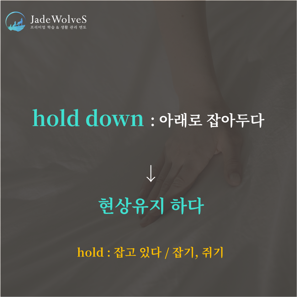2) hold down : "아래로 잡아두다"라고 해서 "현상유지 하다"라는 의미로 사용됩니다.