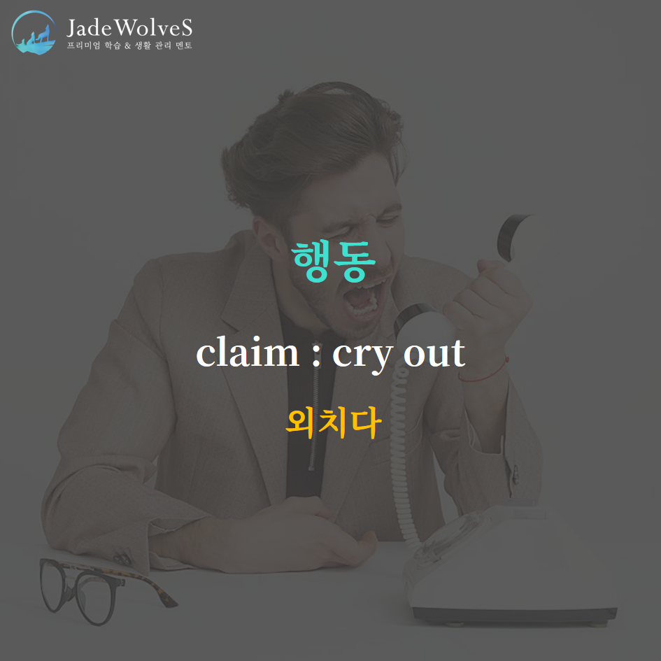 "claim : 외치다"라는 의미로 행동을 나타냅니다.