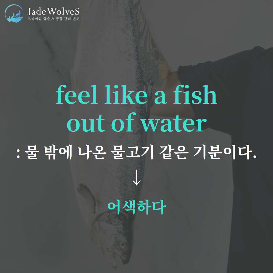 1) feel like a fish out of water : "물 밖에 나온 물고기 같은 기분이다"라고 해서 "이상하다"라는 의미로 사용됩니다.