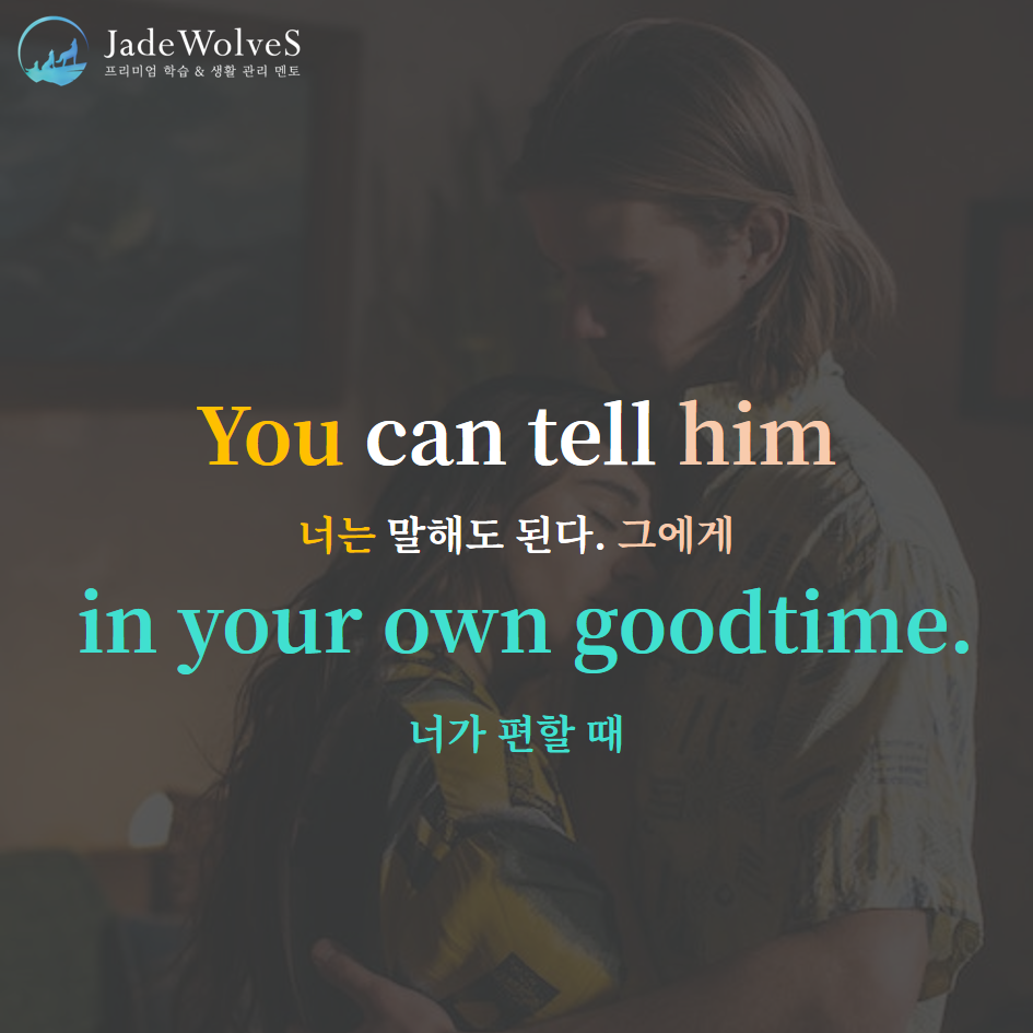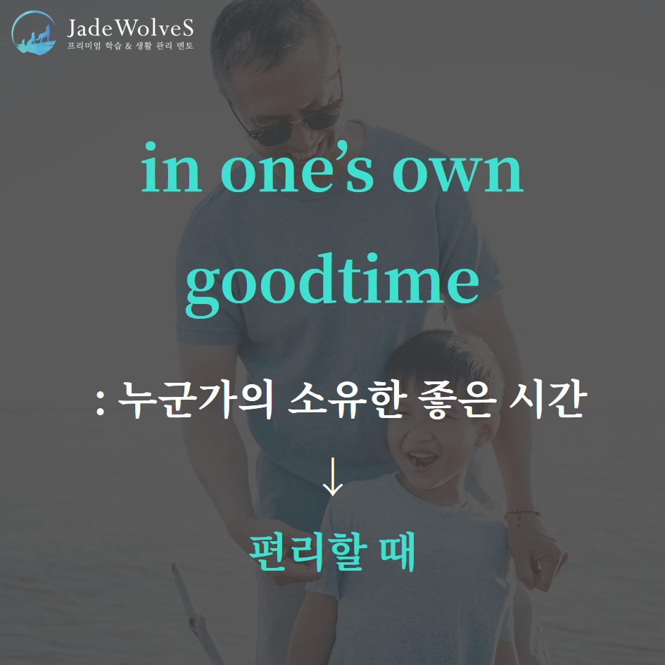 2) in one's own goodtime : "누군가의 좋은 시간"이라고 해서 "편할 때"라는 의미로 사용됩니다.