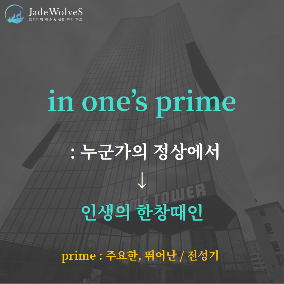1) in one's prime : "누군가의 정상에"라고 해서 "인생의 한창때의, 전성기의"라는 의미로 사용됩니다.