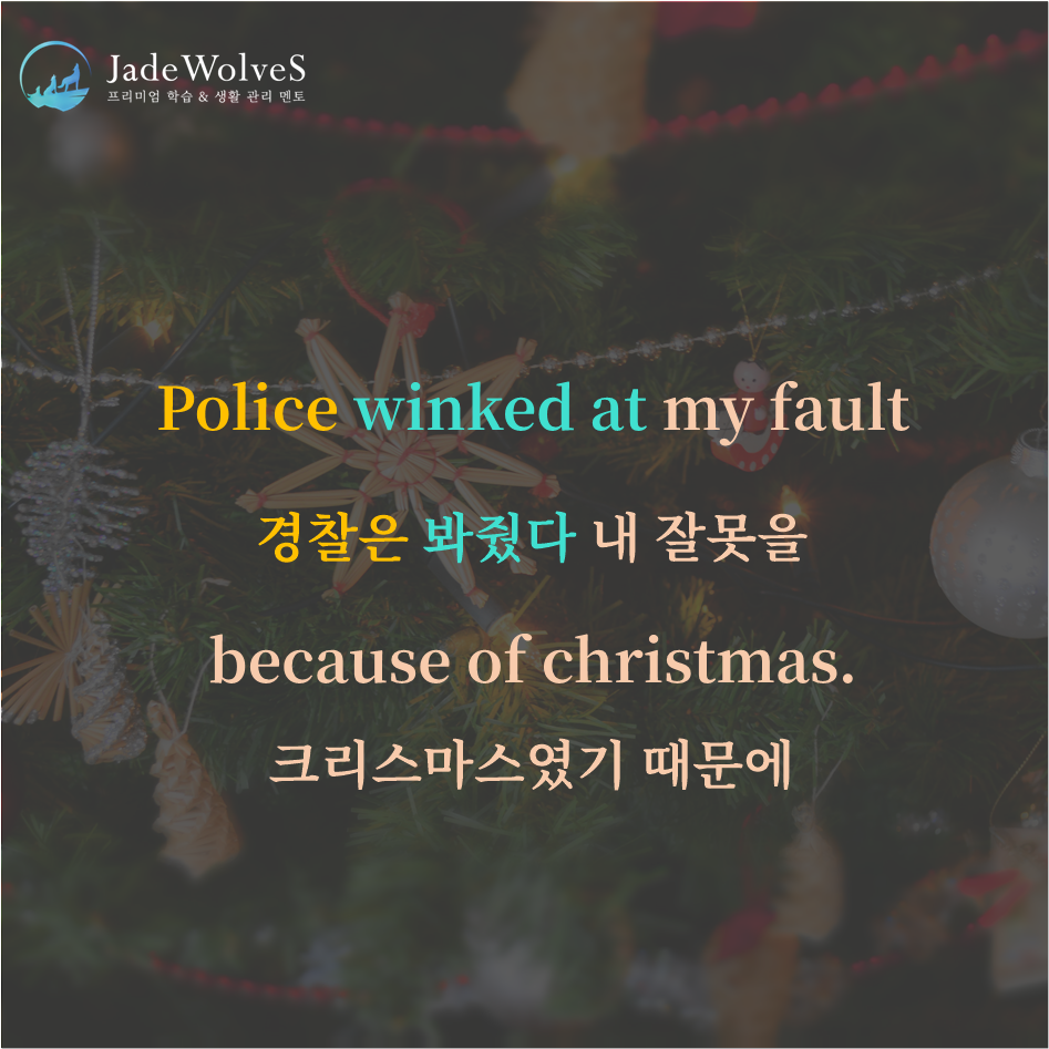 2) wink at : "어떤 곳에 눈감다"이라고 해서 "봐주다"라는 의미로 사용됩니다.