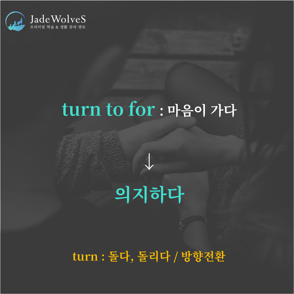 1) turn to for : "마음이 가다"라고 해서 "의지하다"라는 의미로 사용됩니다.