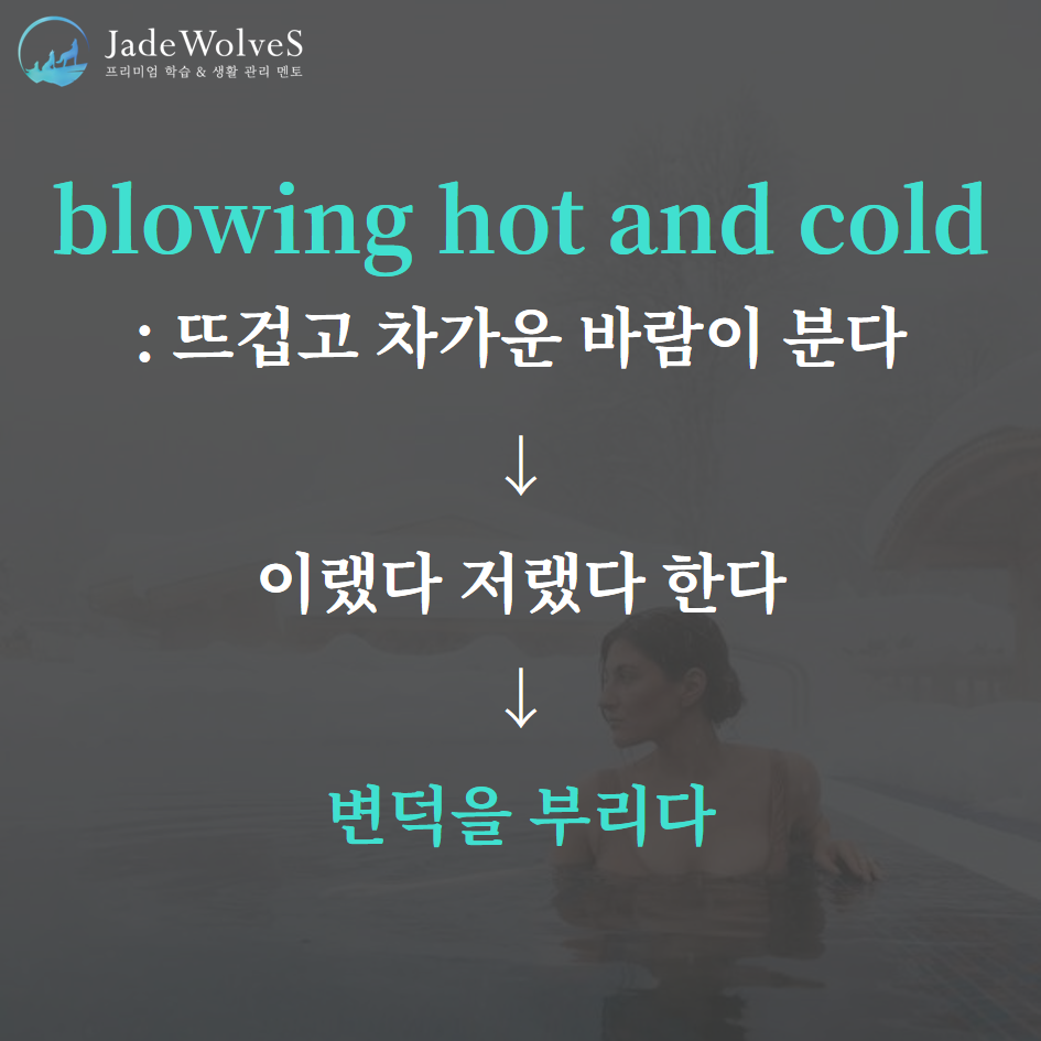 1) blowing hot and cold : "이랬다 저랬다 한다"라고 해서 "변덕을 부리다"라는 의미로 사용됩니다.
