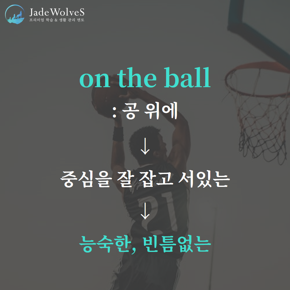 1) on the ball : "공 위에"라고 해서 "능숙한, 빈틈없는"이라는 의미로 사용됩니다.