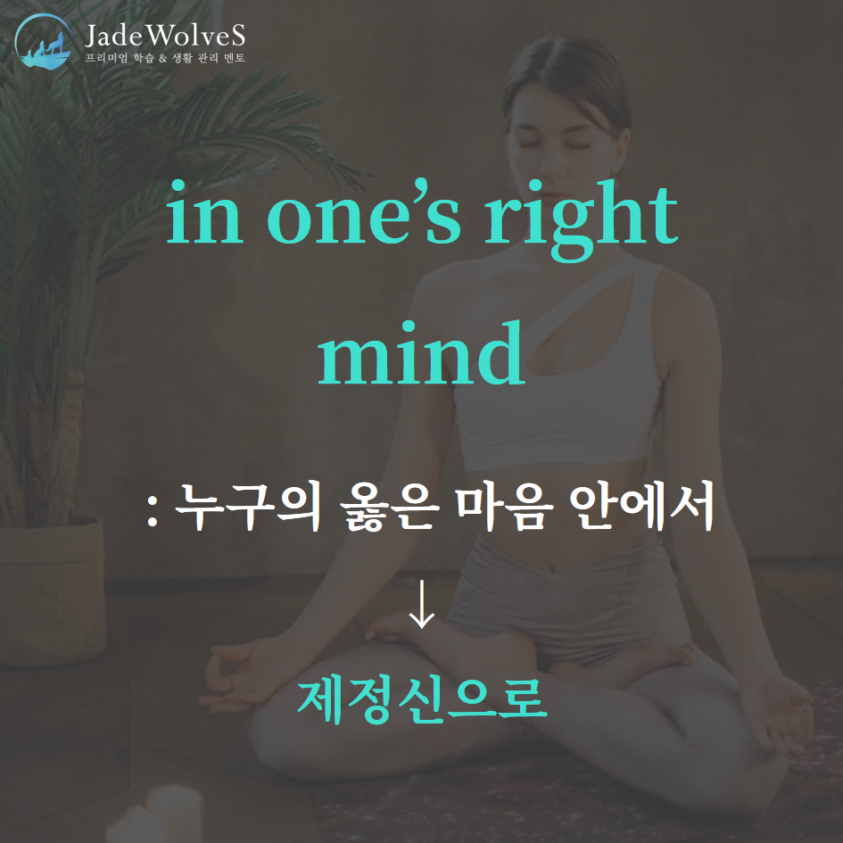 1) in one's right mind : "누구의 옳은 마음 안에서"라고 해서 "제정신으로"라는 의미로 사용됩니다.