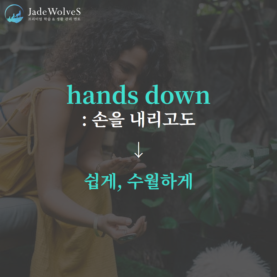 1) hands down : "손을 내리고도"라고 해서 "쉽게, 수월하게"라는 의미로 사용됩니다.