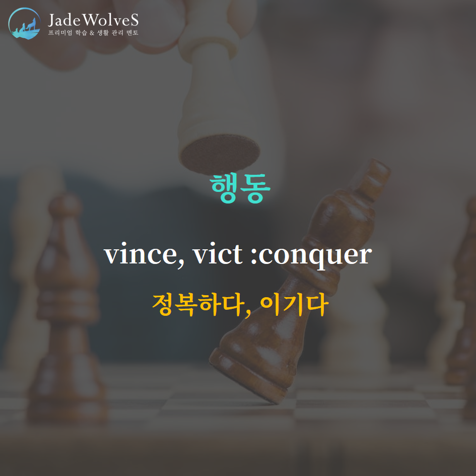 "vince/vict : 정복하다, 이기다"라는 의미로 행동을 나타냅니다.