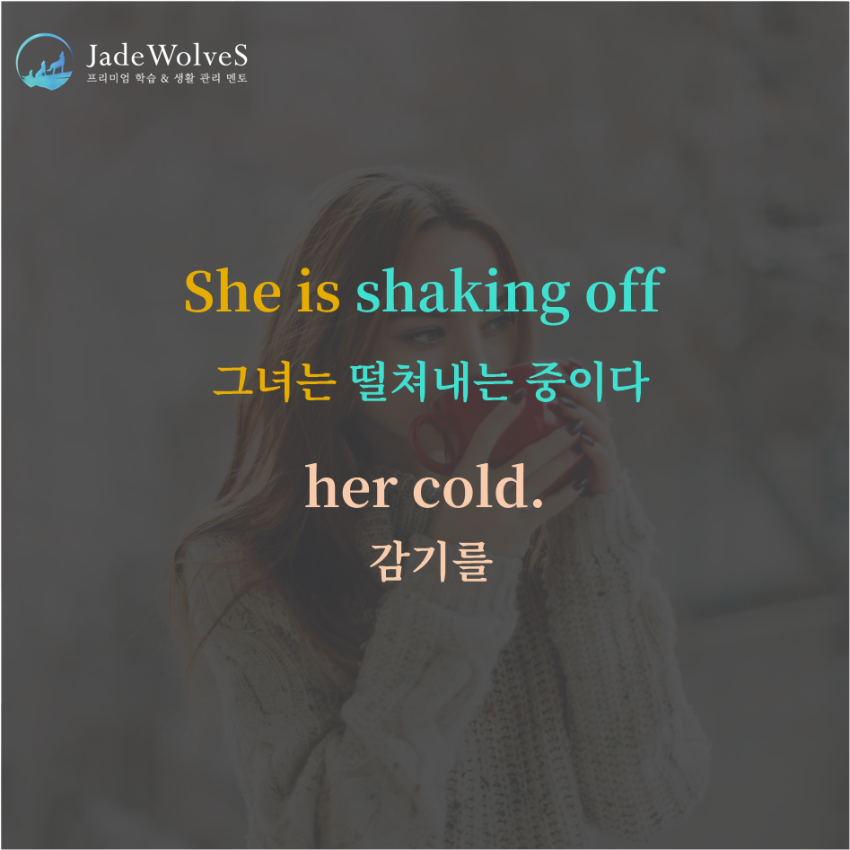 2) shake off : "흔들어 떨어뜨리다"라고 해서 "제거하다"라는 의미로 사용됩니다.