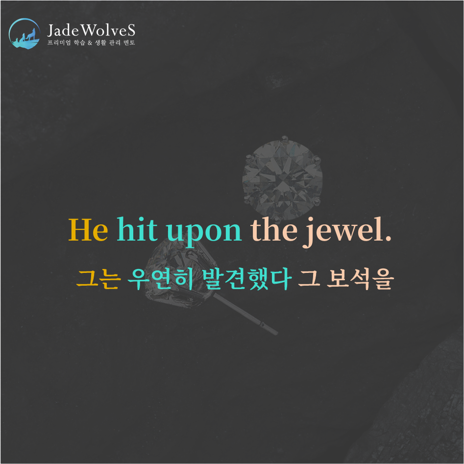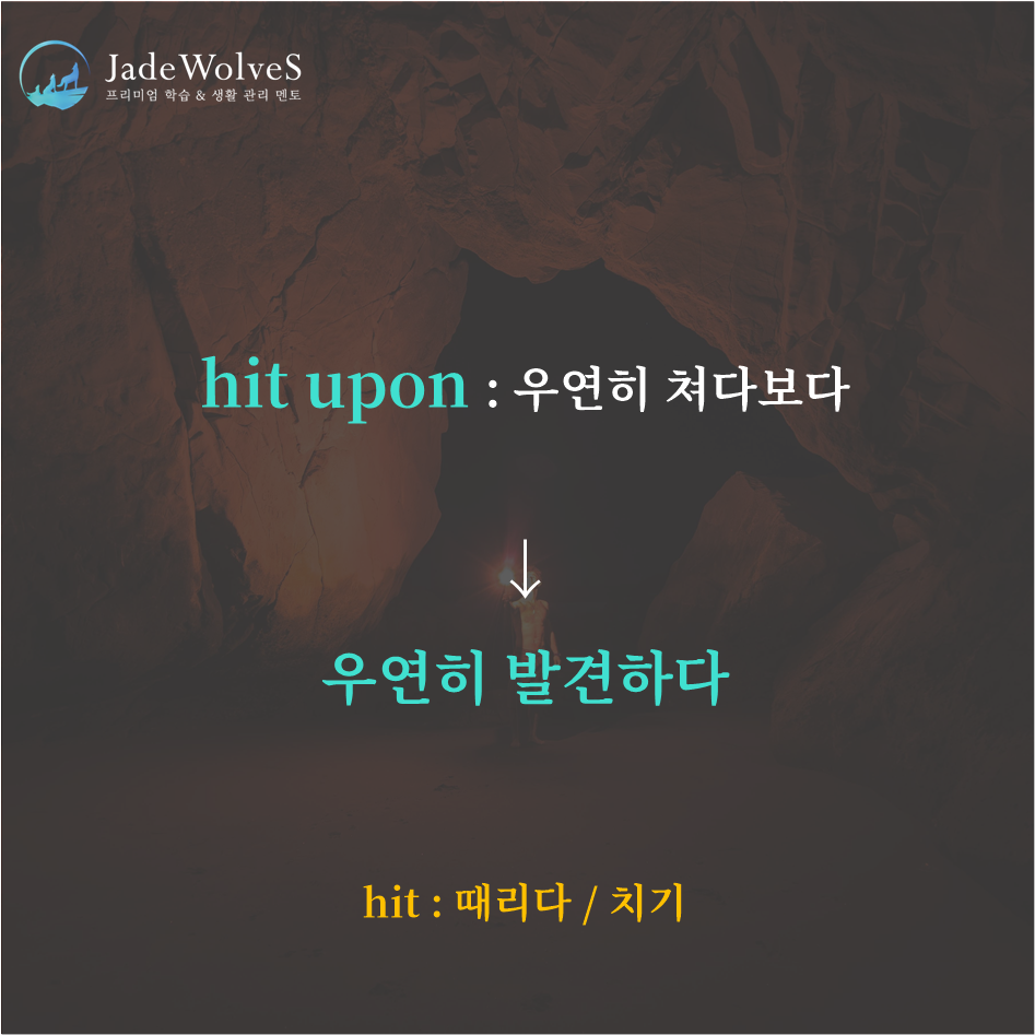1) hit upon : "우연히 쳐다보다"라고 해서 "우연히 발견하다"라는 의미로 사용됩니다.