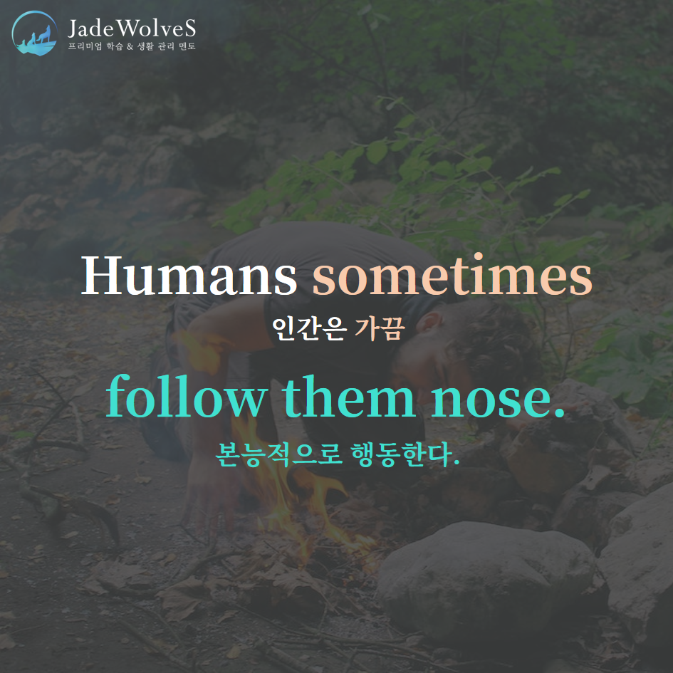 1) follow one's nose : "후각을 따라가다"라고 해서 "본능적으로 행동하다"라는 의미로 사용됩니다.