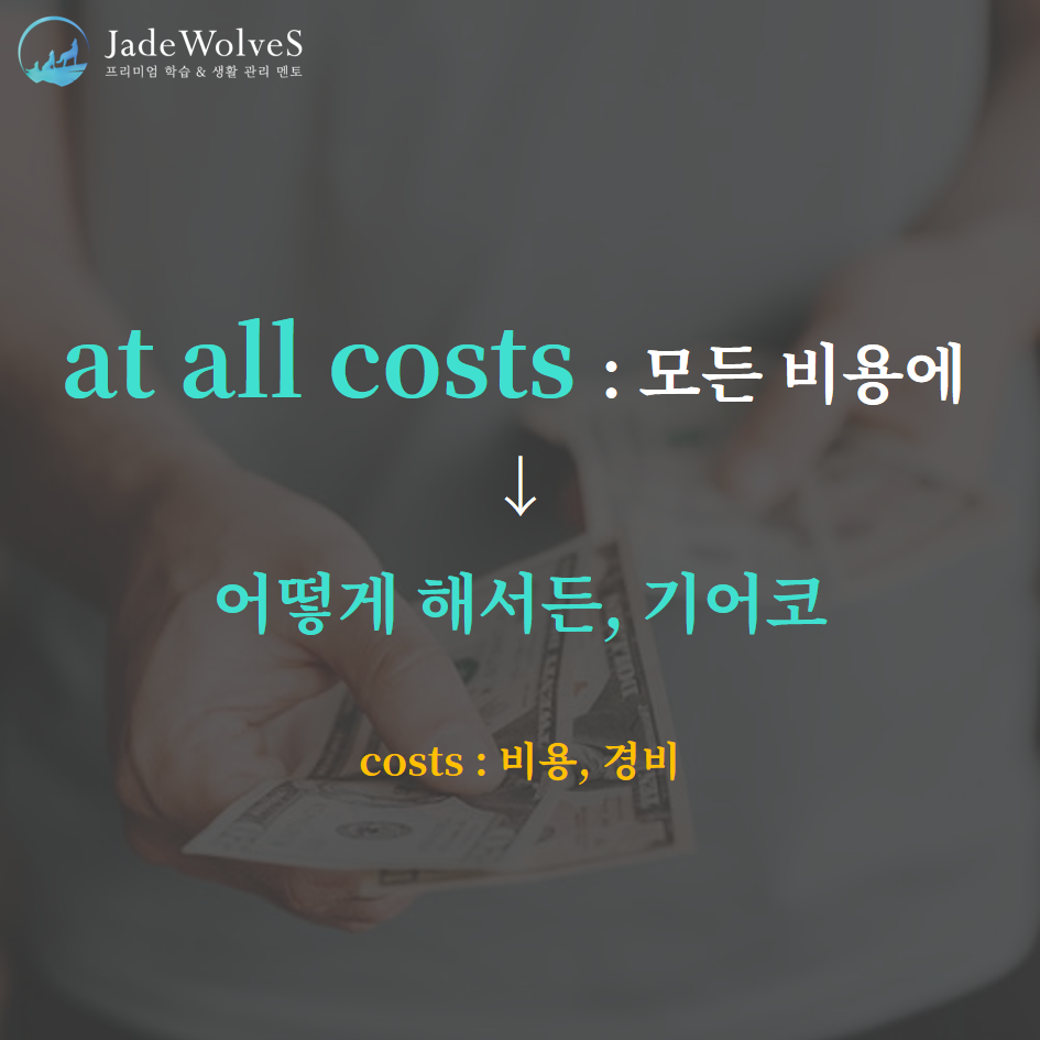 2) at all costs : "모든 비용에"라고 해서 "어떻게 해서든, 기어코"라는 의미로 사용됩니다.