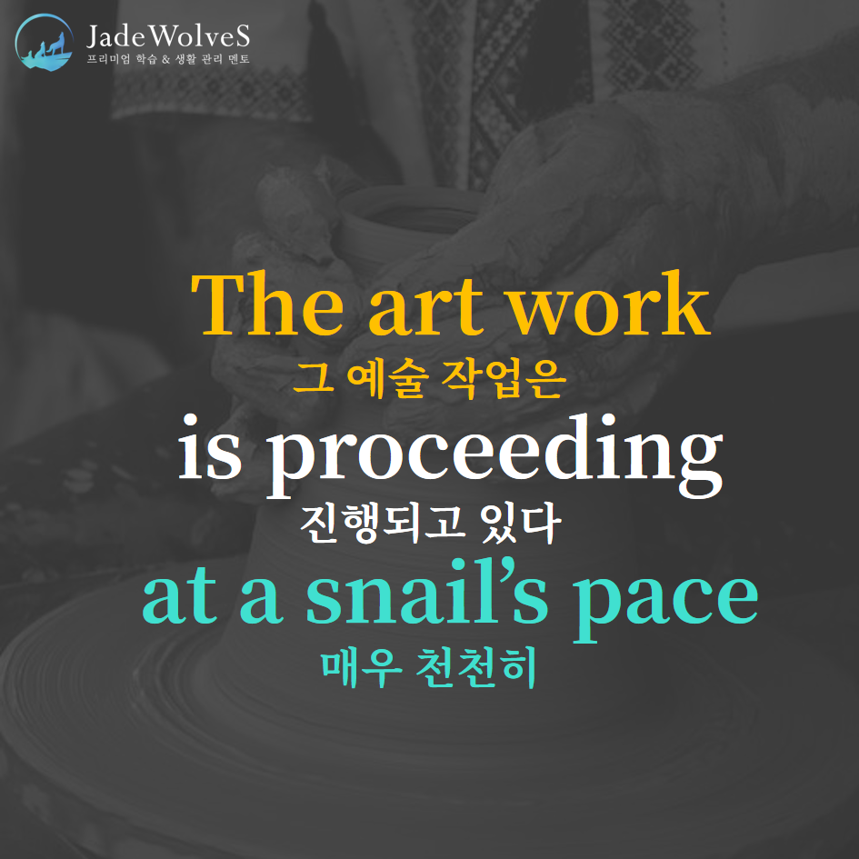 1) at a snail pace : "달팽이의 속도로"라고 해서 "매우 천천히"라는 의미로 사용됩니다.