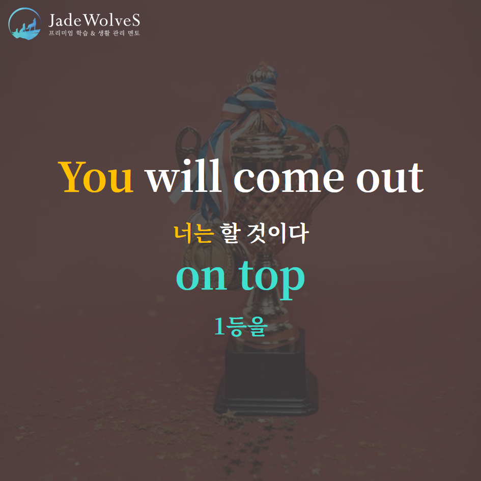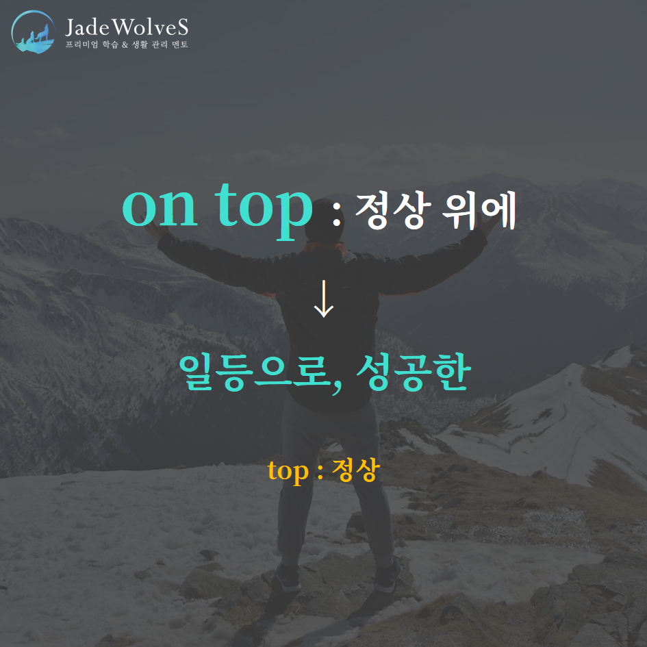 1) on top : "정상 위에"라고 해서 "일등으로, 성공한"이라는 의미로 사용됩니다.