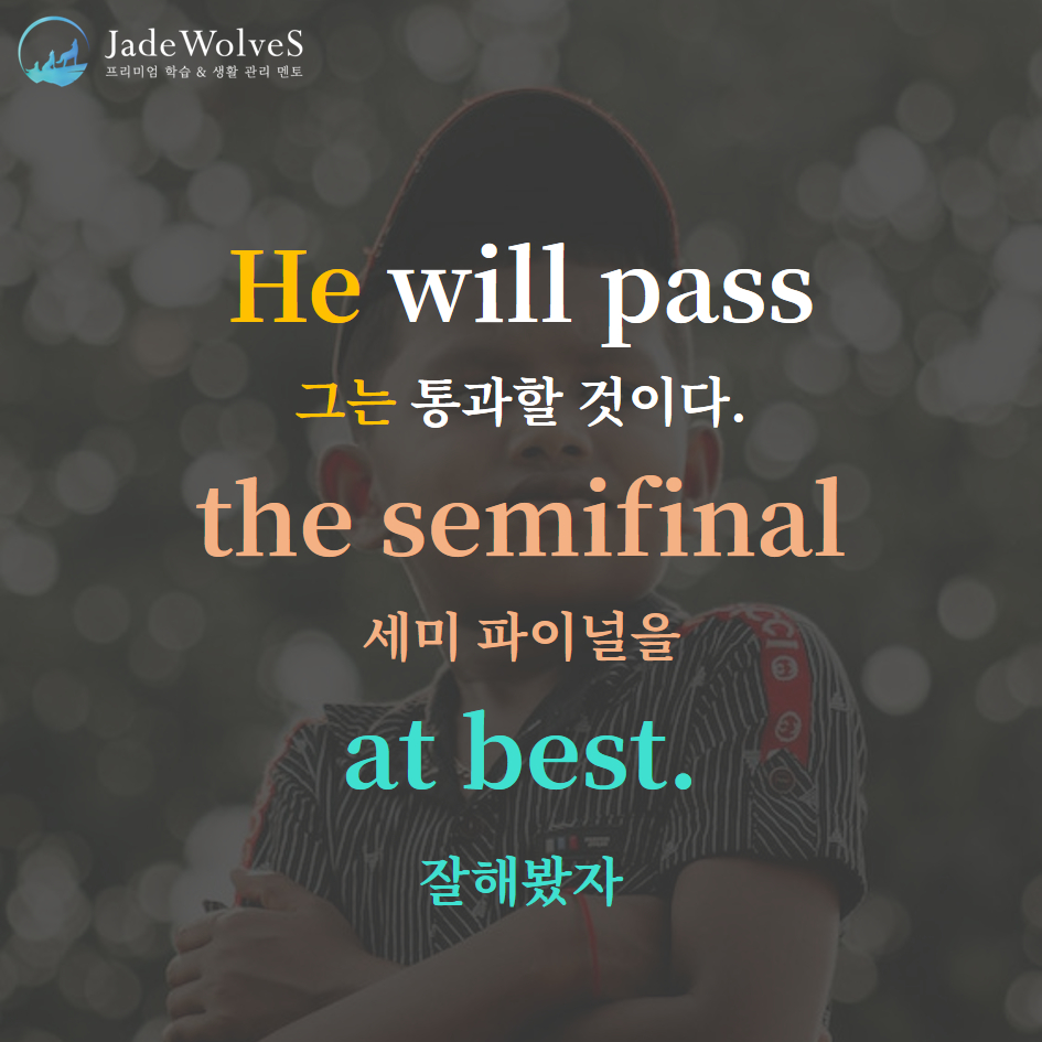 2) at best : "최대치에 있으니"라고 해서 "잘해봤자"라는 의미로 사용됩니다.