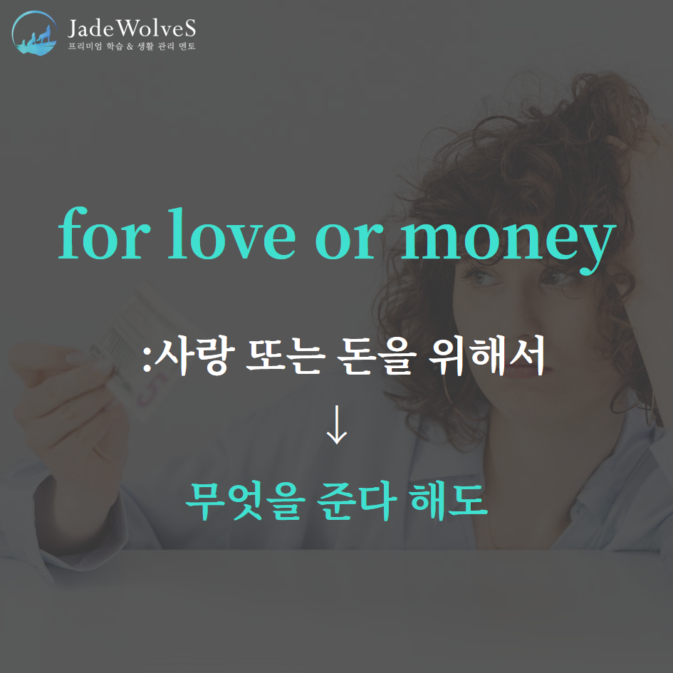 2) for love or money : "사랑 또는 돈을 위해서"라고 해서 "무엇을 준다 해도"라는 의미로 사용됩니다.