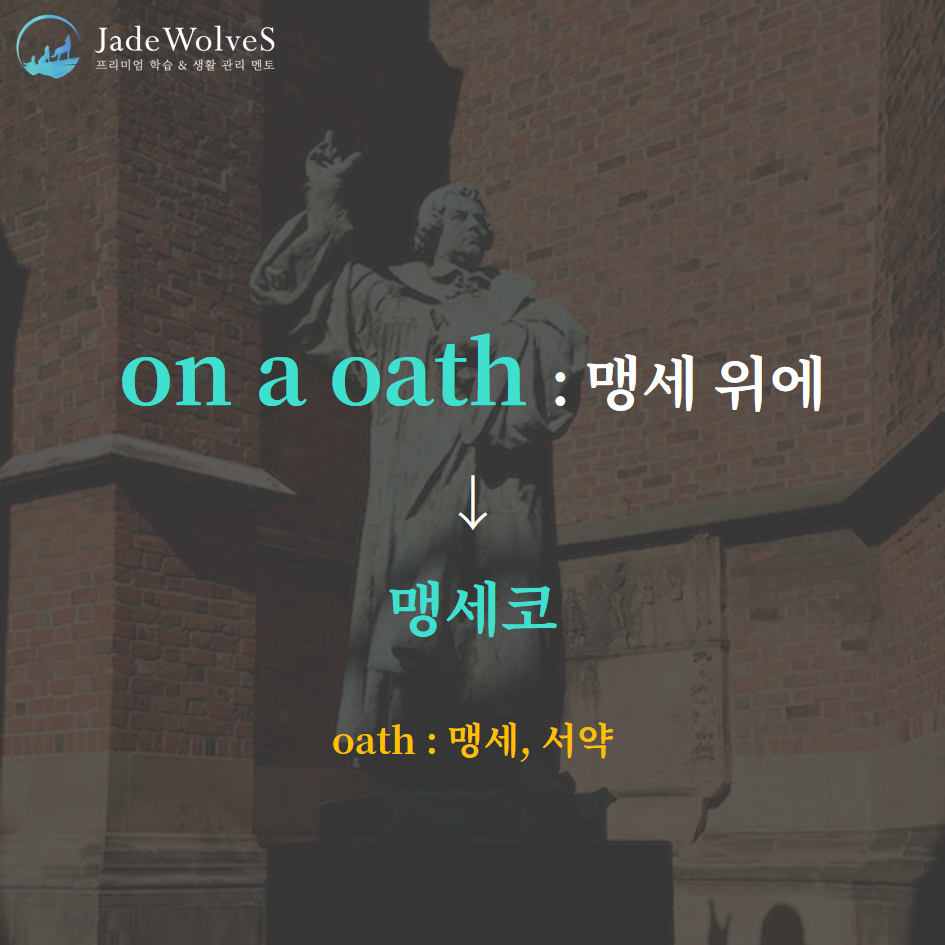1) on a oath : "맹세 위에"라고 해서 "맹세코"라는 의미로 사용됩니다.