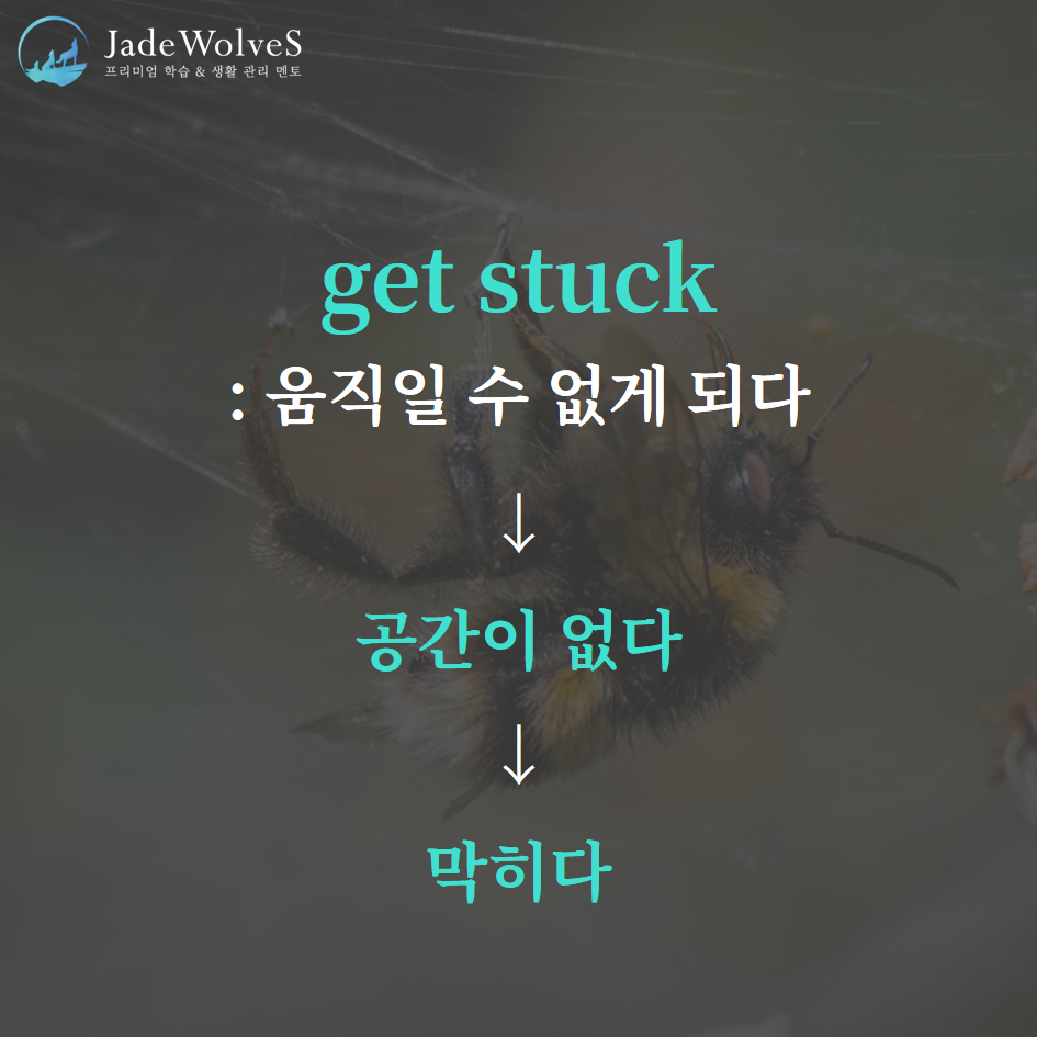 2) get stuck : "움직일 수 없게 되다"라고 해서 "막히다"라는 의미로 사용됩니다.