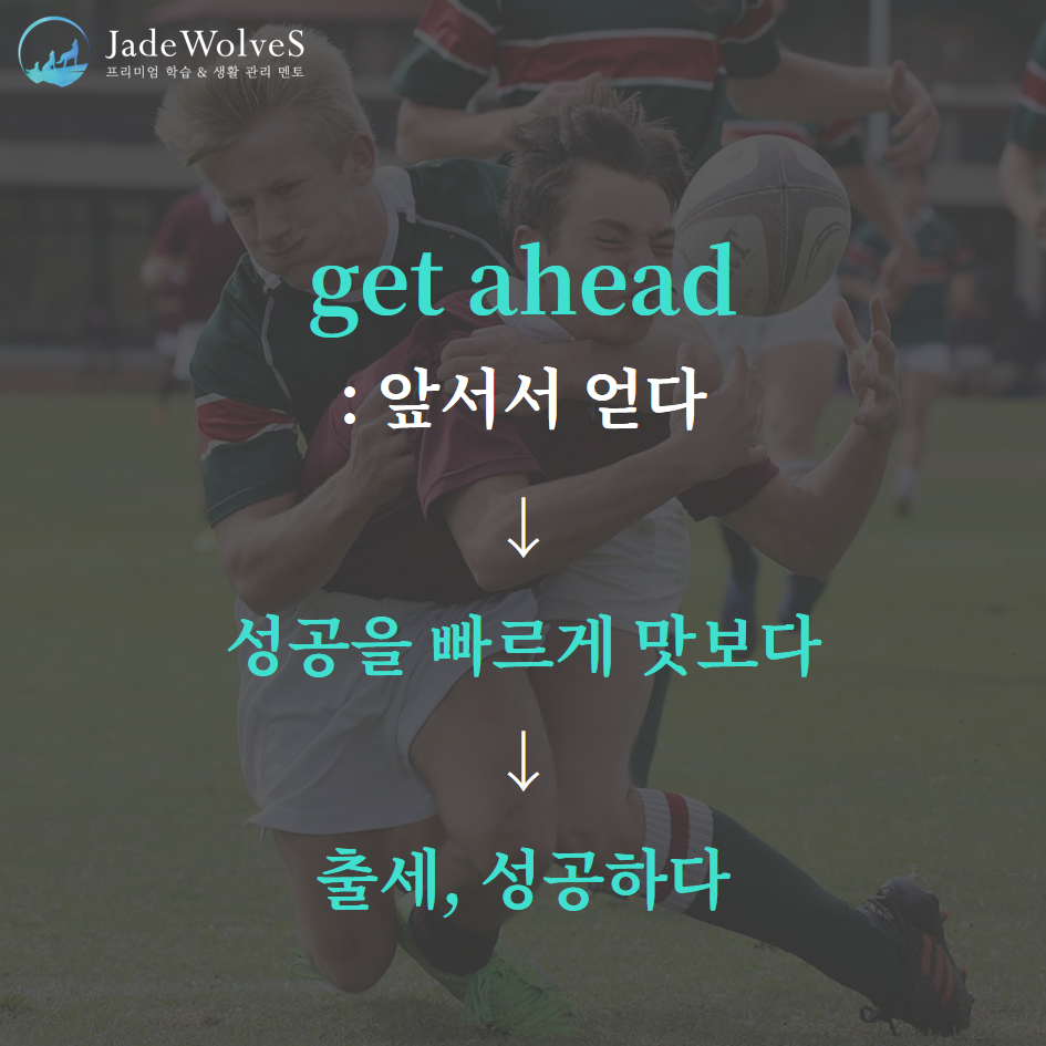 1) get ahead : "앞서서 얻다"라고 해서 "출세, 성공하다"라는 의미로 사용됩니다.