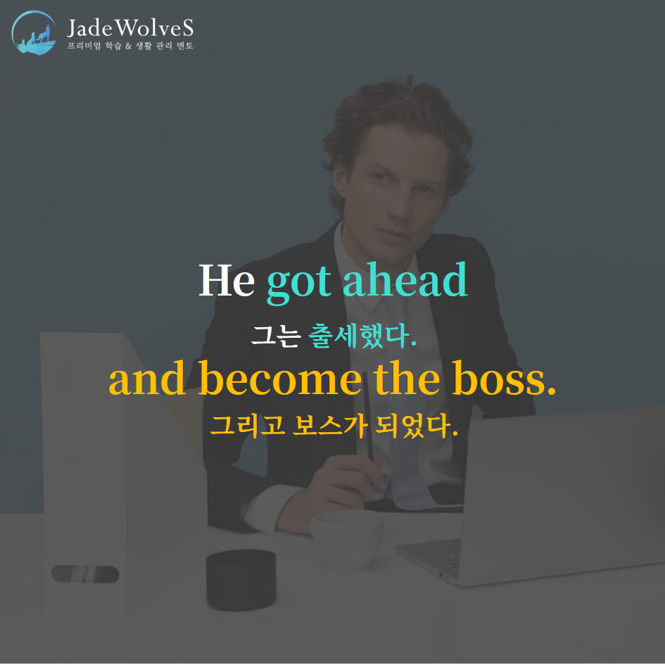 1) get ahead : "앞서서 얻다"라고 해서 "출세, 성공하다"라는 의미로 사용됩니다.