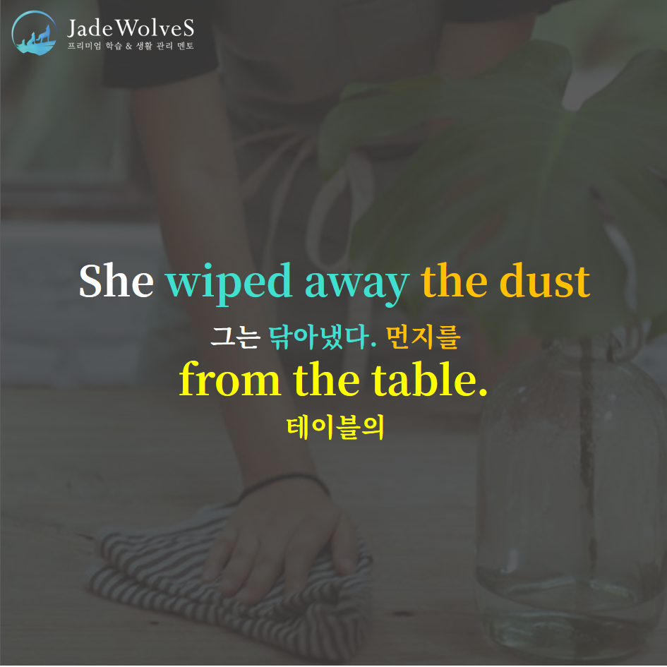 2) wipe away : "저쪽으로 닦아내다"라고 해서 "제거하다, 닦아내다"라는 의미로 사용됩니다.
