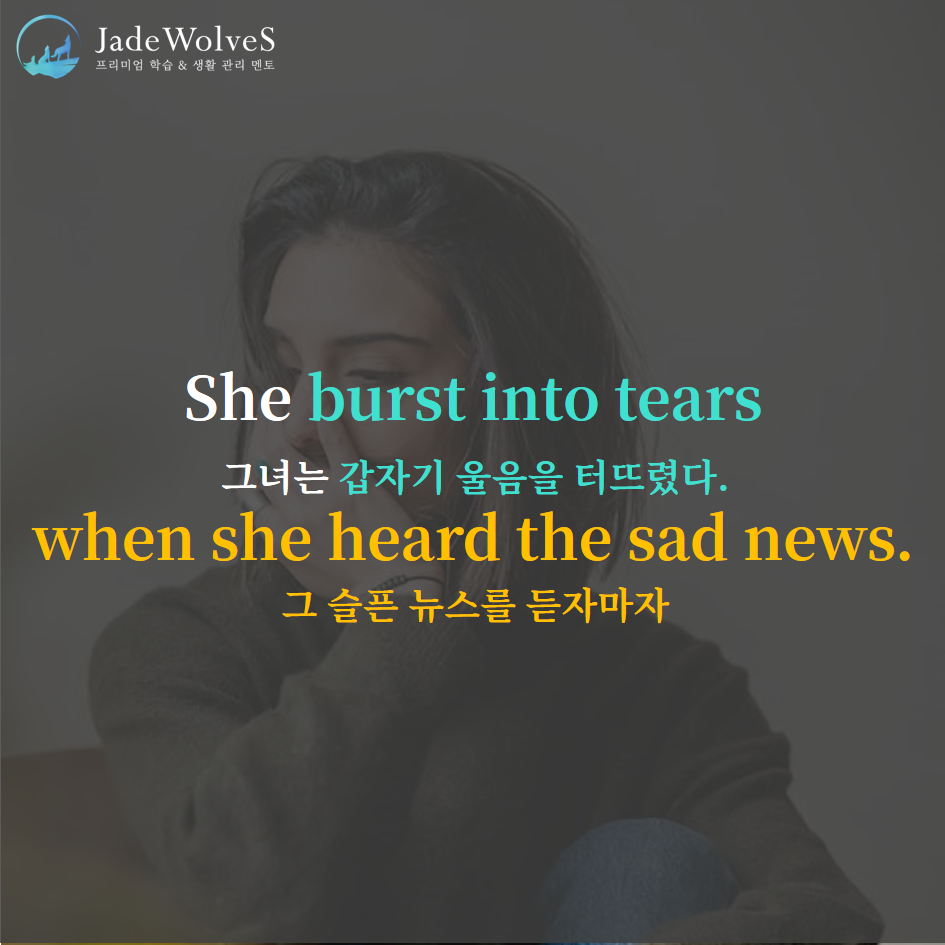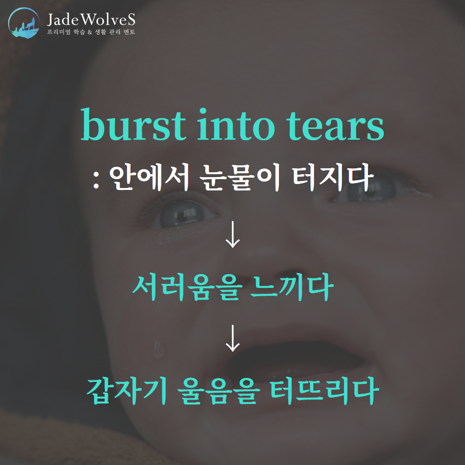 1) burst into tears : "안에서 눈물이 터지다"라고 해서 "갑자기 울음을 터뜨리다"라는 의미로 사용됩니다.