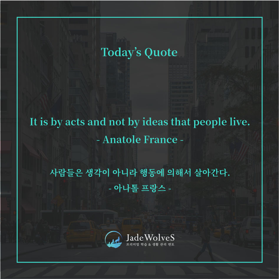 아무리 좋은 생각도, 아무리 위대한 이상도 행동으로 옮기지 않으면 의미가 없습니다.