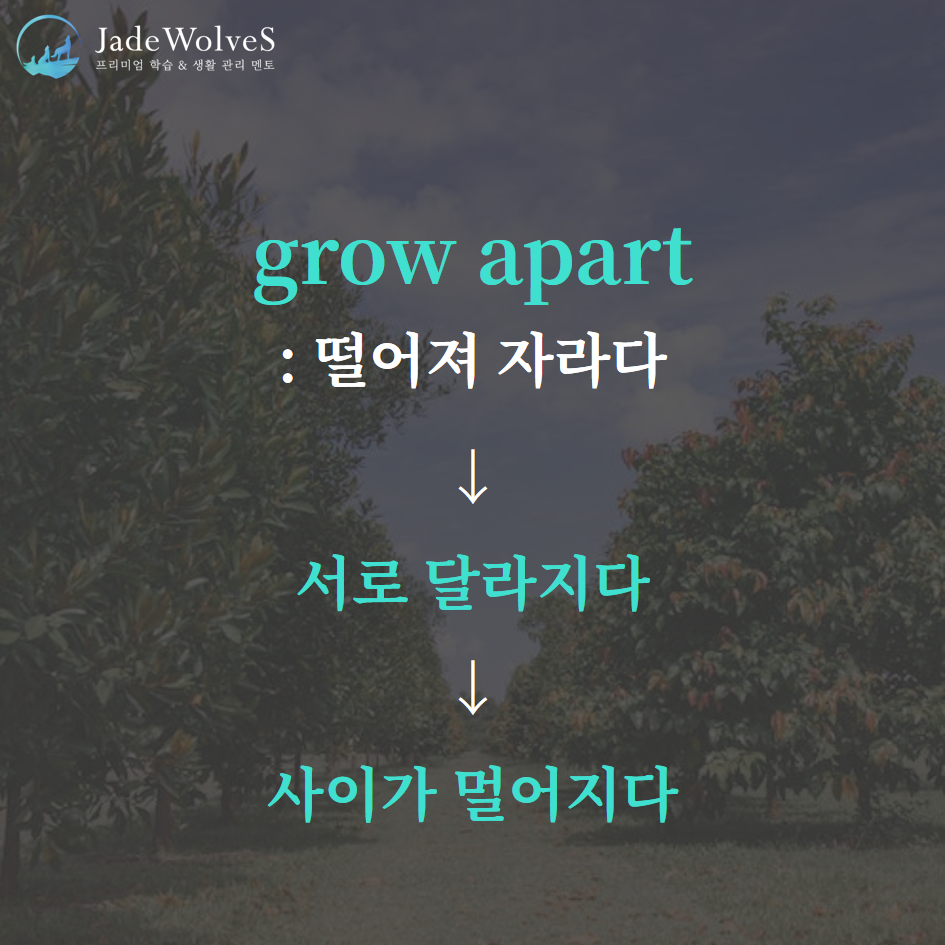 2) grow apart : "떨어져 잘라다"라고 해서 "사이가 멀어지다"이라는 의미로 사용됩니다.