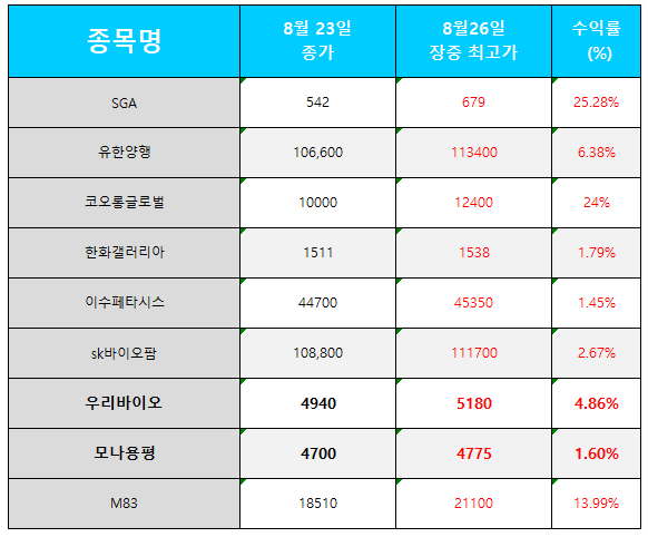 | 오늘의 관심 종목 수익률(2024.08.23) (1) | 2024.08.23 |