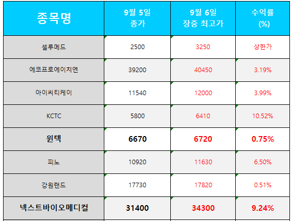 | 오늘의 관심 종목 수익률(2024.09.09) (0) | 2024.09.09 |