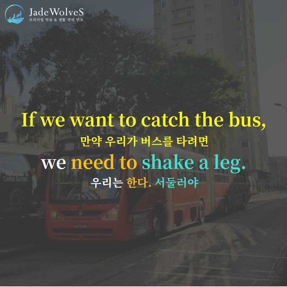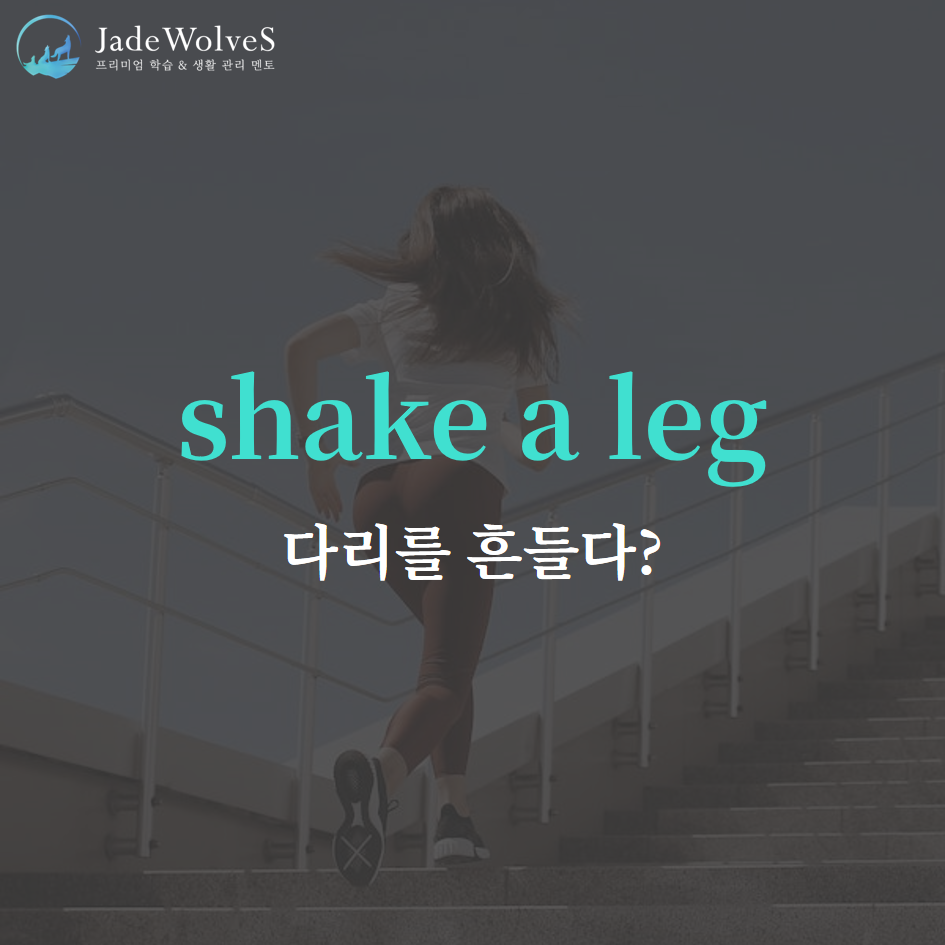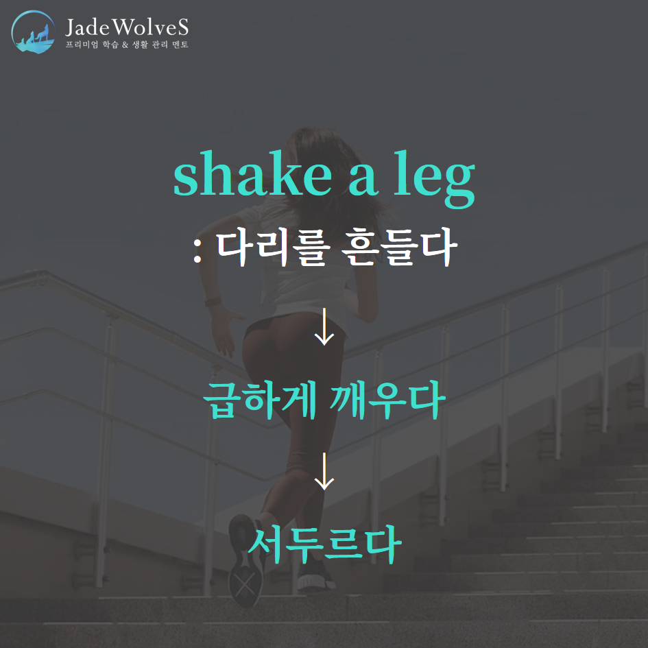 2) shake a leg : "다리를 흔들다"라고 해서 "서두르다"라는 의미로 사용됩니다.