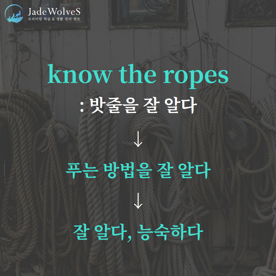 1) know the ropes : "밧줄을 잘 알다"라고 해서 "능숙하다"라는 의미로 사용됩니다.