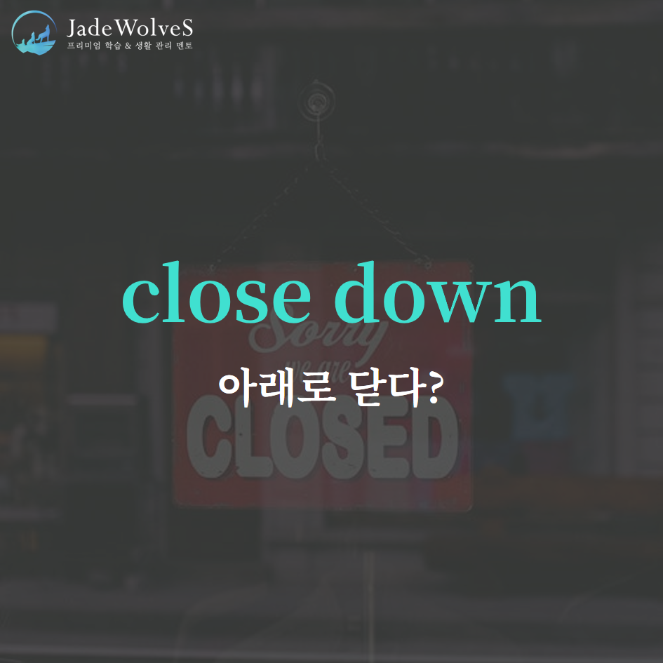 1) close down : "완전히 닫다"라고 해서 "폐쇄하다"라는 의미로 사용됩니다.