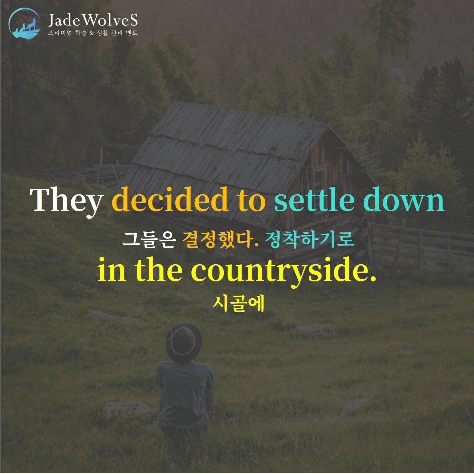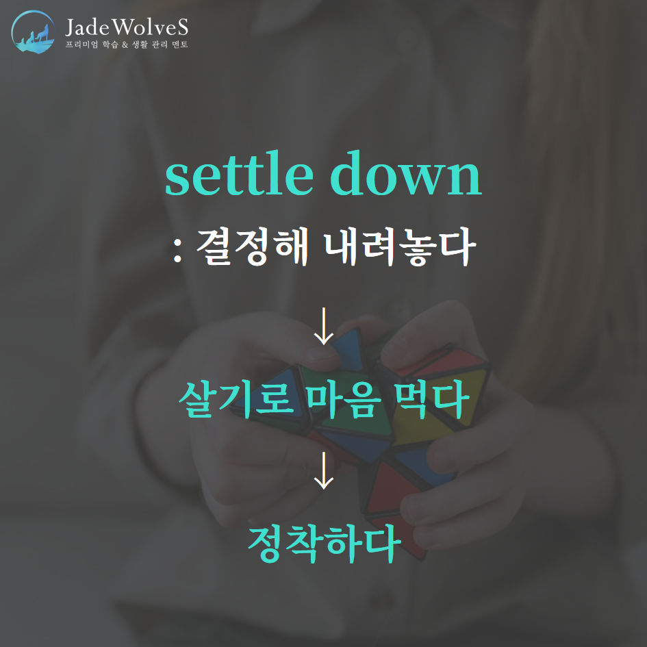 2) settle down : "결정해 내려 놓다"라고 해서 "정착하다"라는 의미로 사용됩니다.