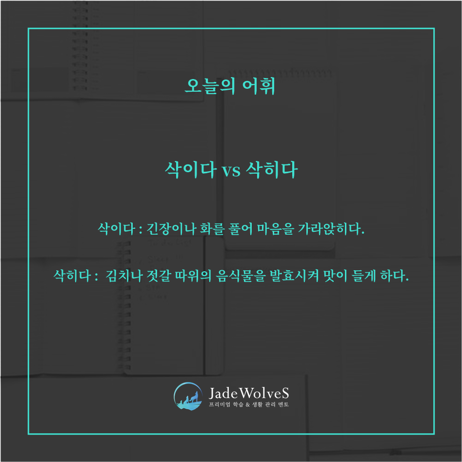 청랑의 어휘력 높이기 : 오늘은 '삭이다'와 '삭히다'의 차이점에 대해 알아보겠습니다.