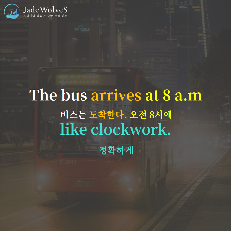 2) like clockwork : "시계 태엽처럼"이라고 해서 "규칙적으로, 정확하게"라는 의미로 사용됩니다.
