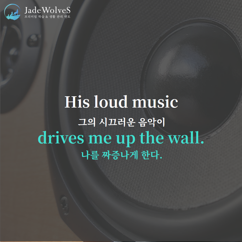 2) drive someone up the wall : "누군가를 벽으로 몰다"라고 해서 "짜증나게 하다"라는 의미로 사용됩니다.