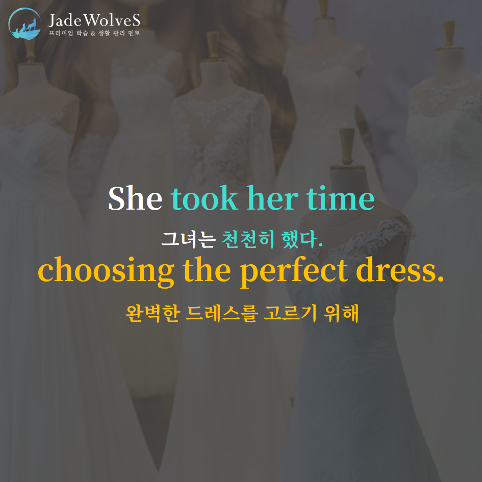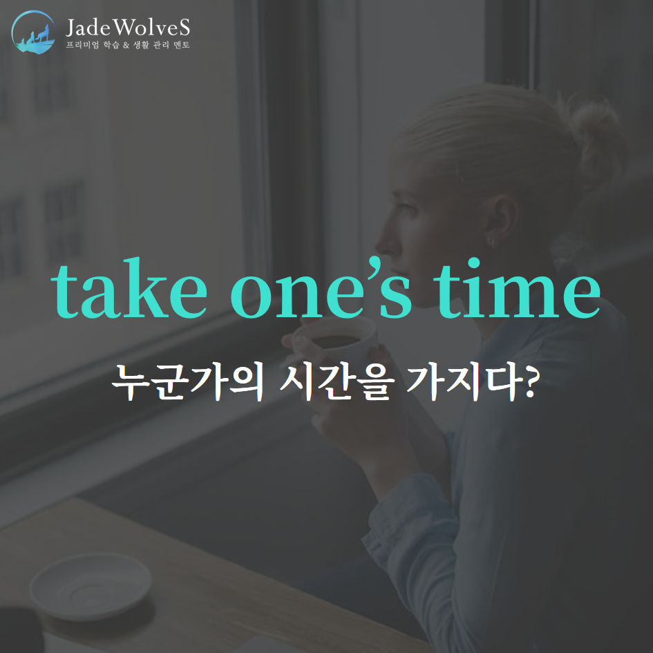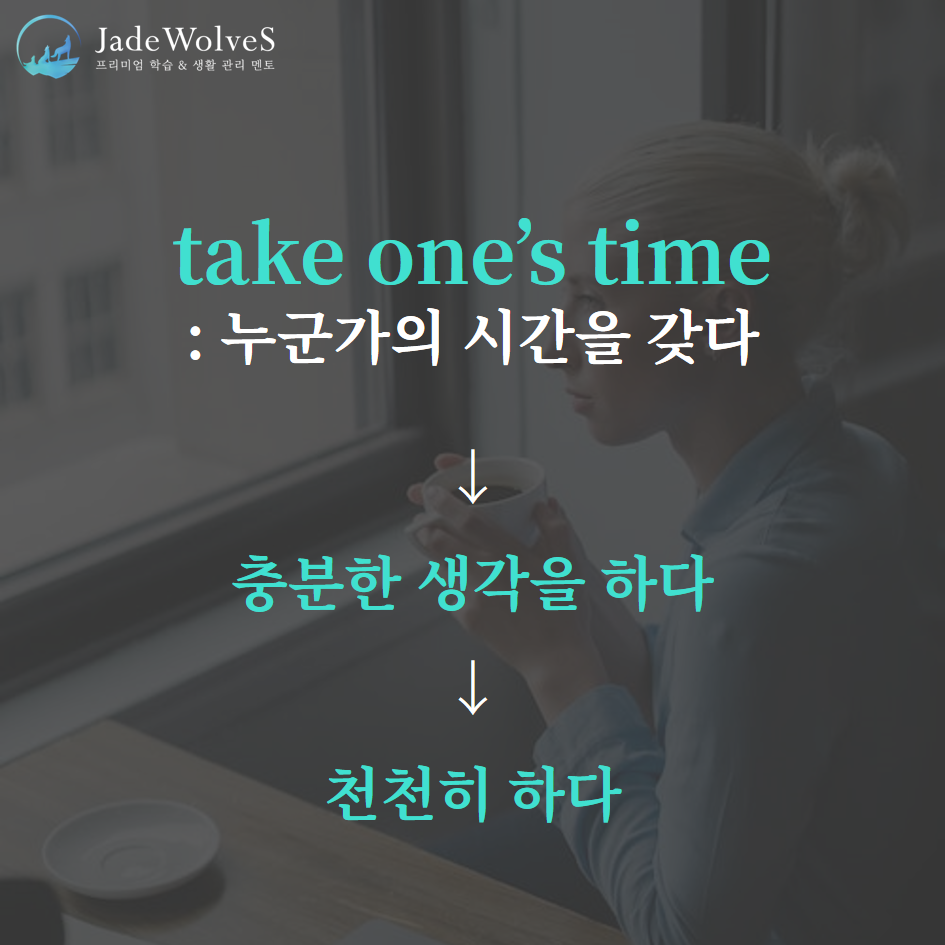 1) take one's time : "누군가의 시간을 갖다"라고 해서 "천천히 하다"라는 의미로 사용됩니다.