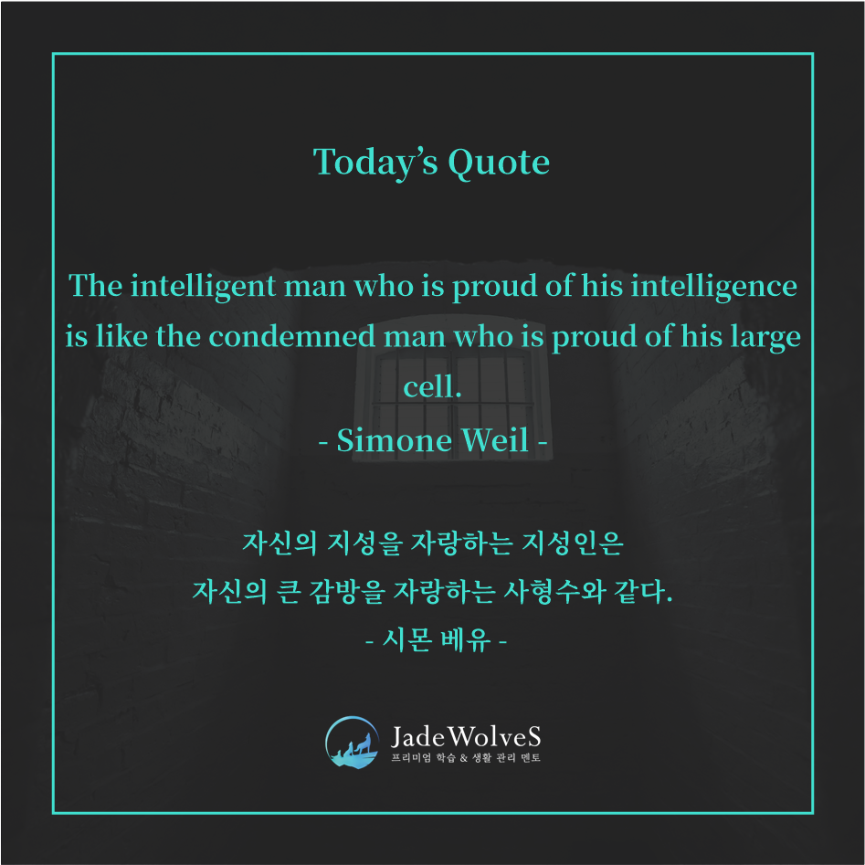 자신의 능력에 대해 자부심을 가지는 것도 좋지만, 그 자부심이 우리를 감옥에 가두지 않도록 해야 합니다.