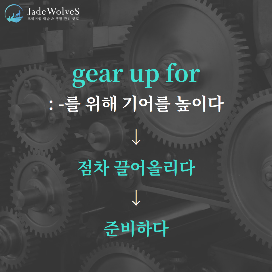 1) gear up for : "~를 위해 기어를 높이다"라고 해서 "준비하다"라는 의미로 사용됩니다.