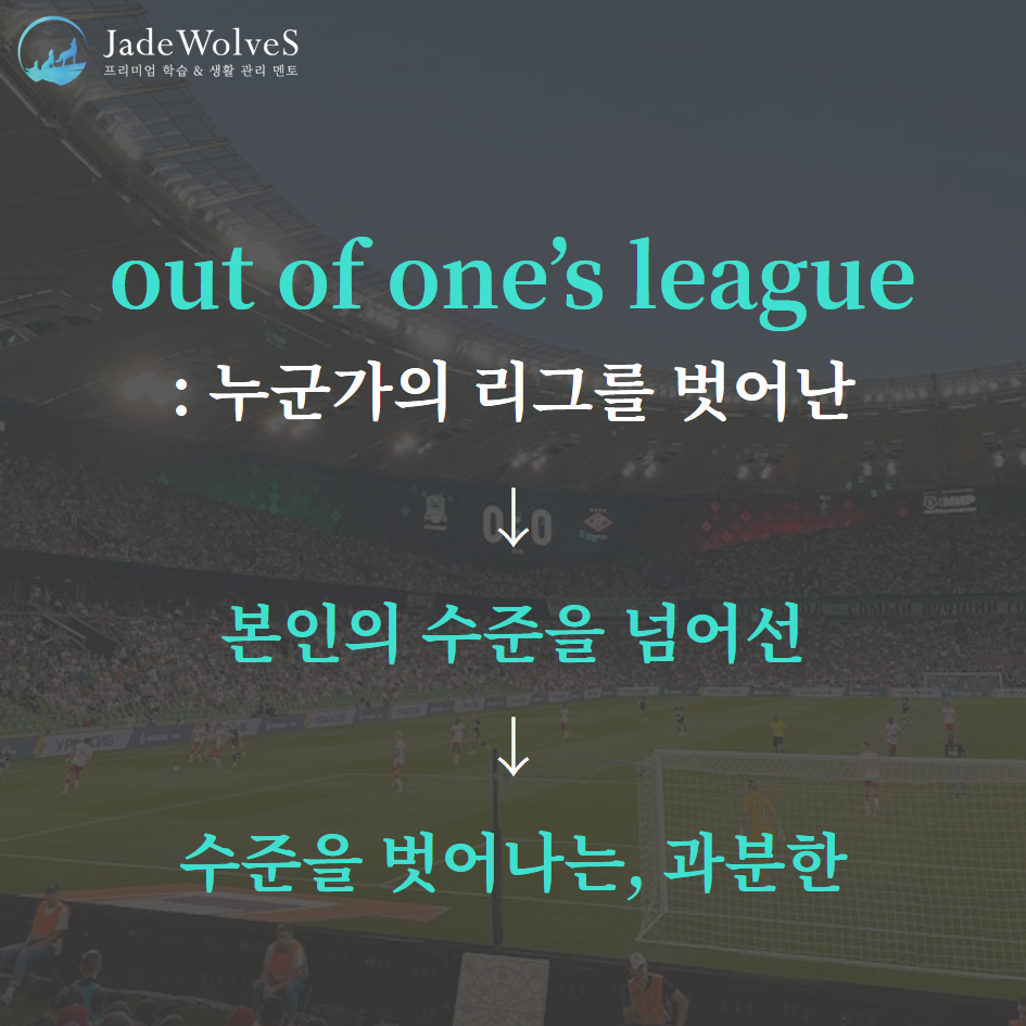 2) out of one's league : "누군가의 리그를 벗어난"이라고 해서 "수준을 벗어나는, 과분한"이라는 의미로 사용됩니다.