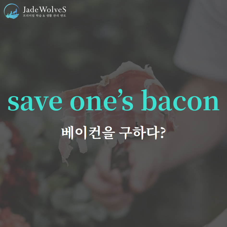 1) save one's bacon : "누군가의 베이컨을 구하다"라고 해서 "위기를 모면하다, 구해주다"라는 의미로 사용됩니다.