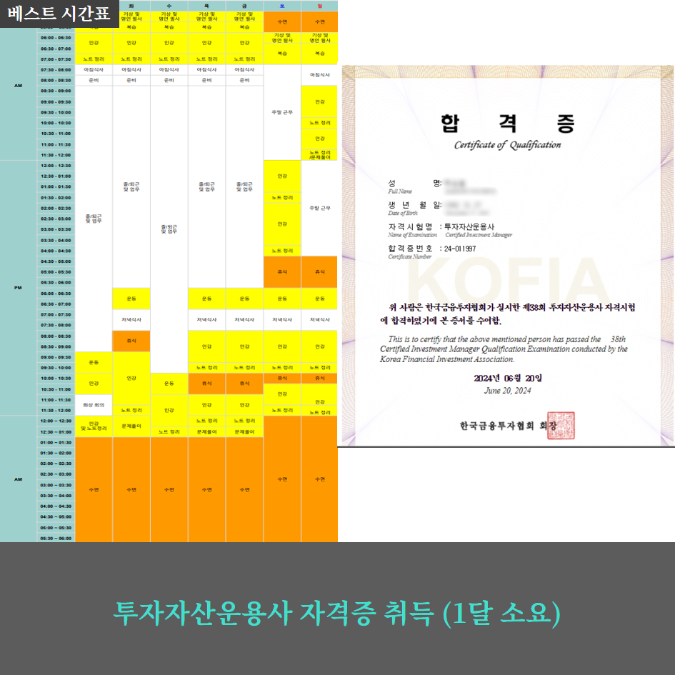 매일 아침 5시 기상과 출근 전 2시간 학습(복습, 인강)에 집중했습니다.