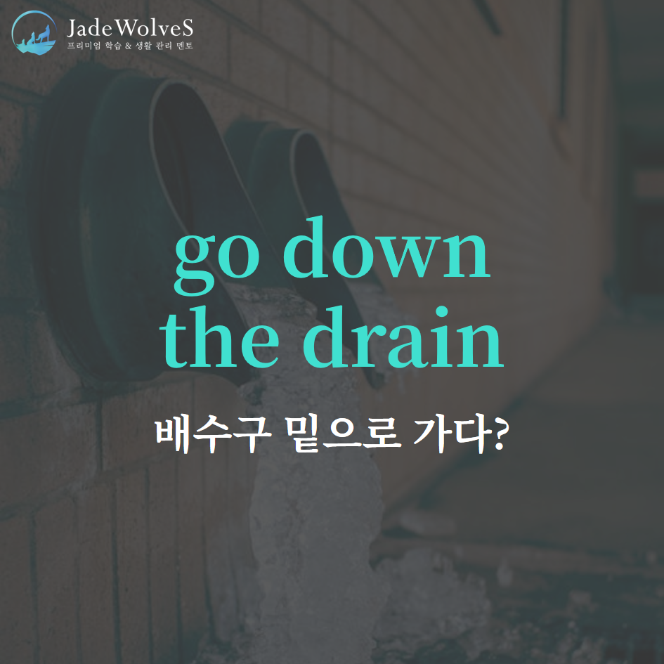 2) go down the drain : "배수구로 내려가다"라고 해서 "물거품, 헛수고가 되다"라는 의미로 사용됩니다.